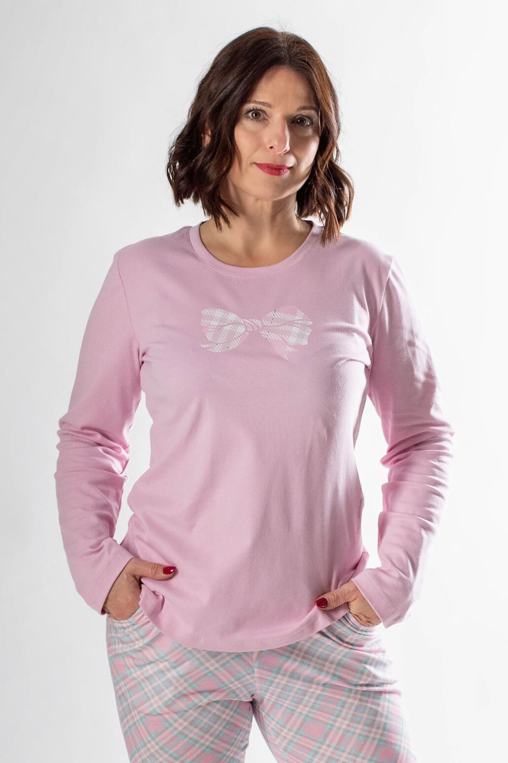 Dámske pyžamo s dlhými rukávmi MIYA ružové I potlač Mašľa