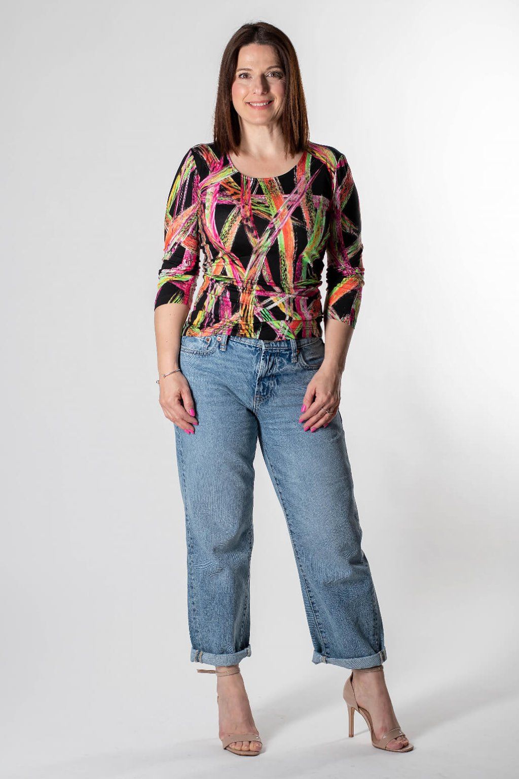 Toto moderné tričko s hladkým strihom a štýlovým vzorom je ideálnou voľbou pre každú ženu. Vďaka príjemnému viskózovému materiálu a trojštvrťovým rukávom sa budete cítiť pohodlne po celý deň. Tričko je navrhnuté tak, aby zakrylo drobné nedostatky postavy a zároveň dodalo vášmu outfitu šmrnc. Je skvelé na každodenné nosenie, či už do práce alebo na stretnutie s priateľmi. Skombinujte ho so sukňou alebo nohavicami z našej ponuky a vytvorte si dokonalý look.