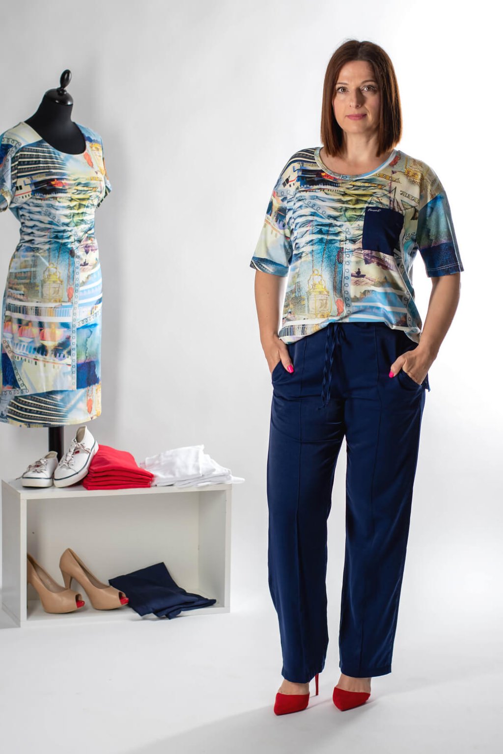 Oživte svoj letný šatník s naším dámskym tričkom plným farieb! Toto štýlové tričko je ideálne na každý deň a prinesie do vášho outfitu hravosť a sviežosť. Vyrobené z príjemnej zmesi viskózy a elastanu, tričko má krátke rukávy a širší okrúhly výstrih so širším lemom, čo zaručuje pohodlné nosenie a lichotivý vzhľad pre rôzne typy postáv. Najvýraznejším prvkom je jeho letná farebná potlač v odtieňoch modrej, žltej a ďalších farieb, ktorá evokuje slnečné dni a bezstarostnú atmosféru. Vzor je dynamický a pútavý, dokonale pre letné obdobie. Praktické modré náprsné vrecko dodáva tričku moderný a funkčný detail. Tričko je skvelou voľbou na bežné nosenie, stretnutia s priateľmi, dovolenku alebo prechádzky. Ľahko ho skombinujete s džínsami, šortkami alebo jednofarebnou sukňou. Doprajte si kúsok, ktorý podčiarkne vašu osobnosť a prinesie farbu do vášho dňa!