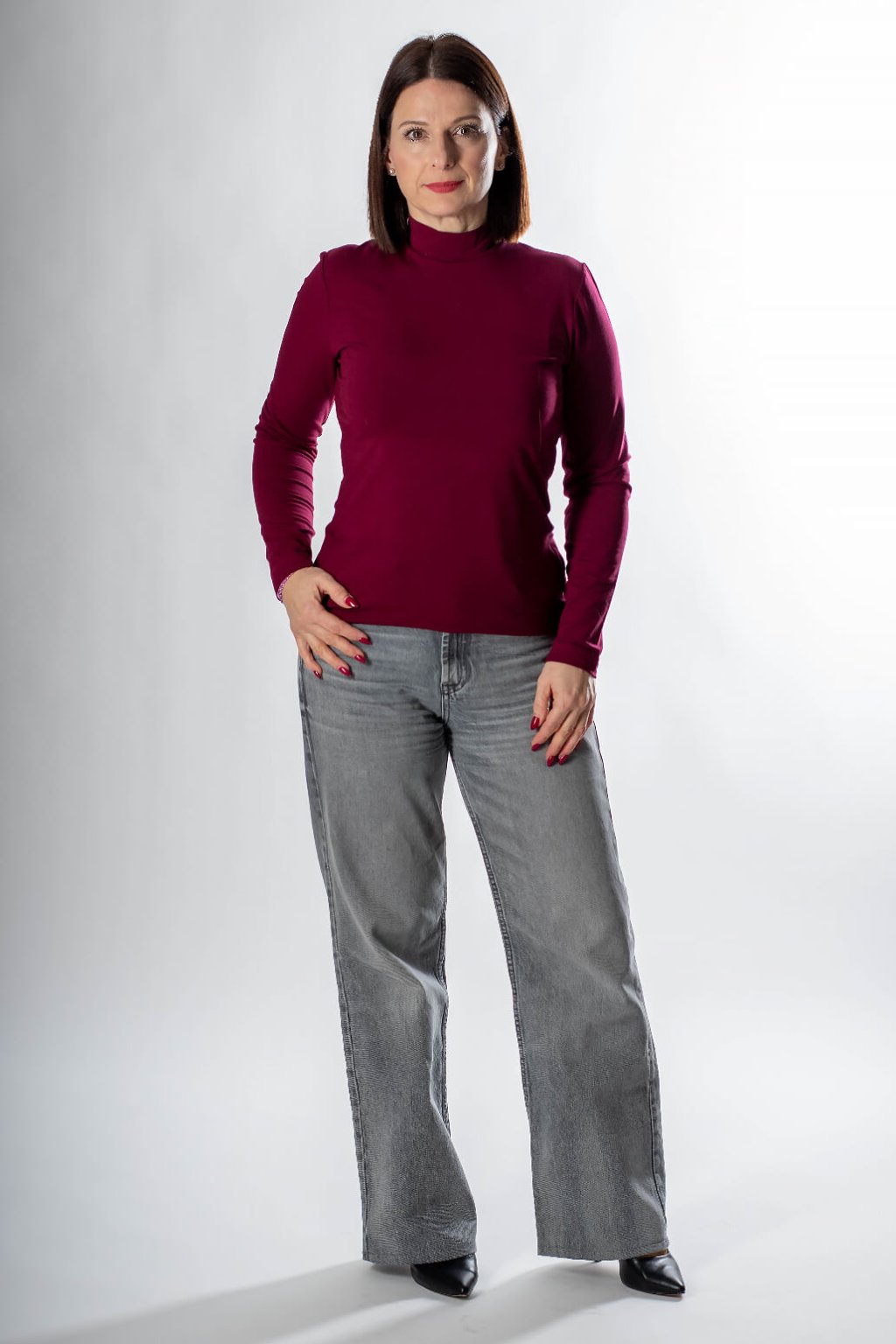 Dámsky bordový poloroláčik s dlhými rukávmi 56