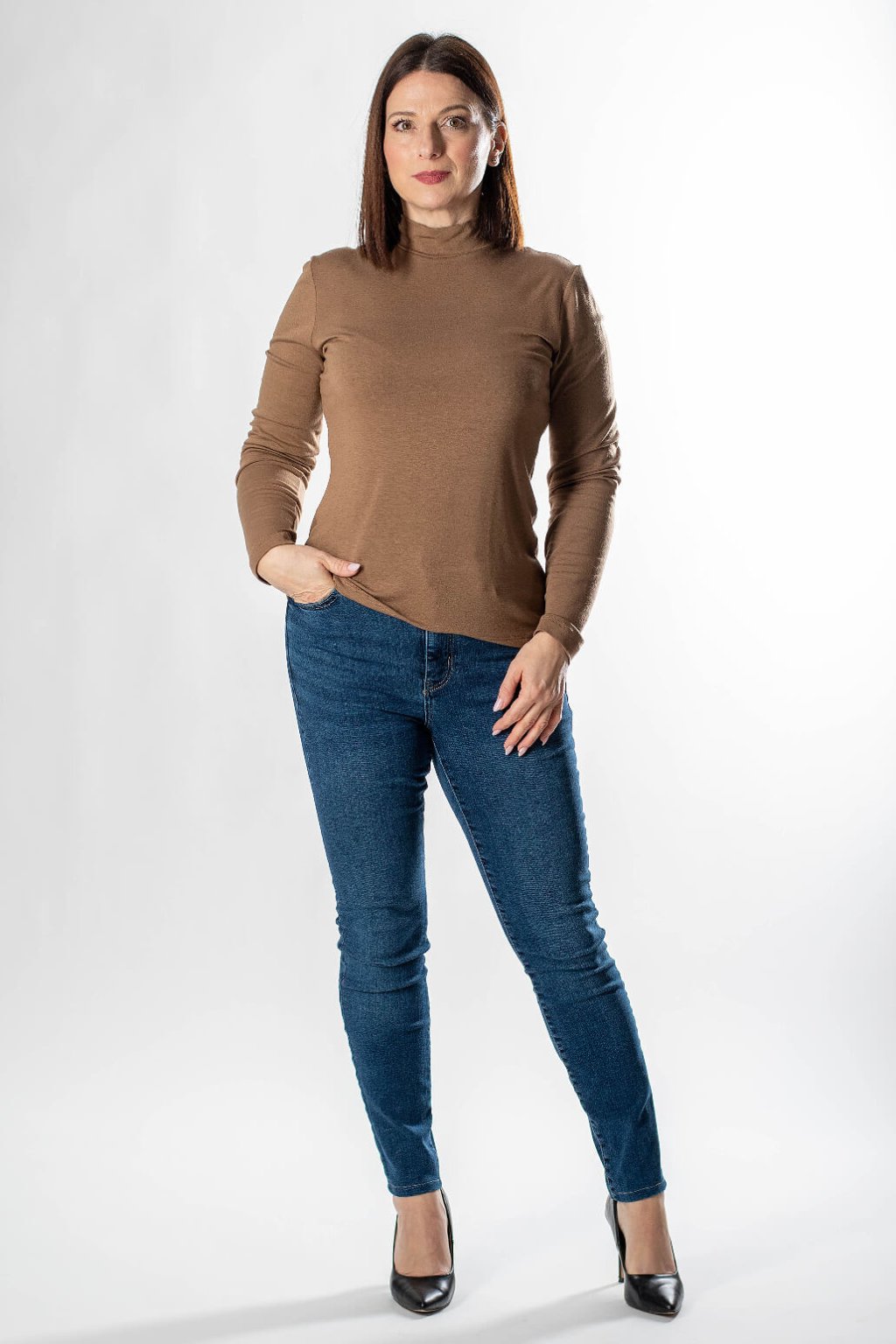 Dámsky poloroláčik s dlhými rukávmi Tabak
