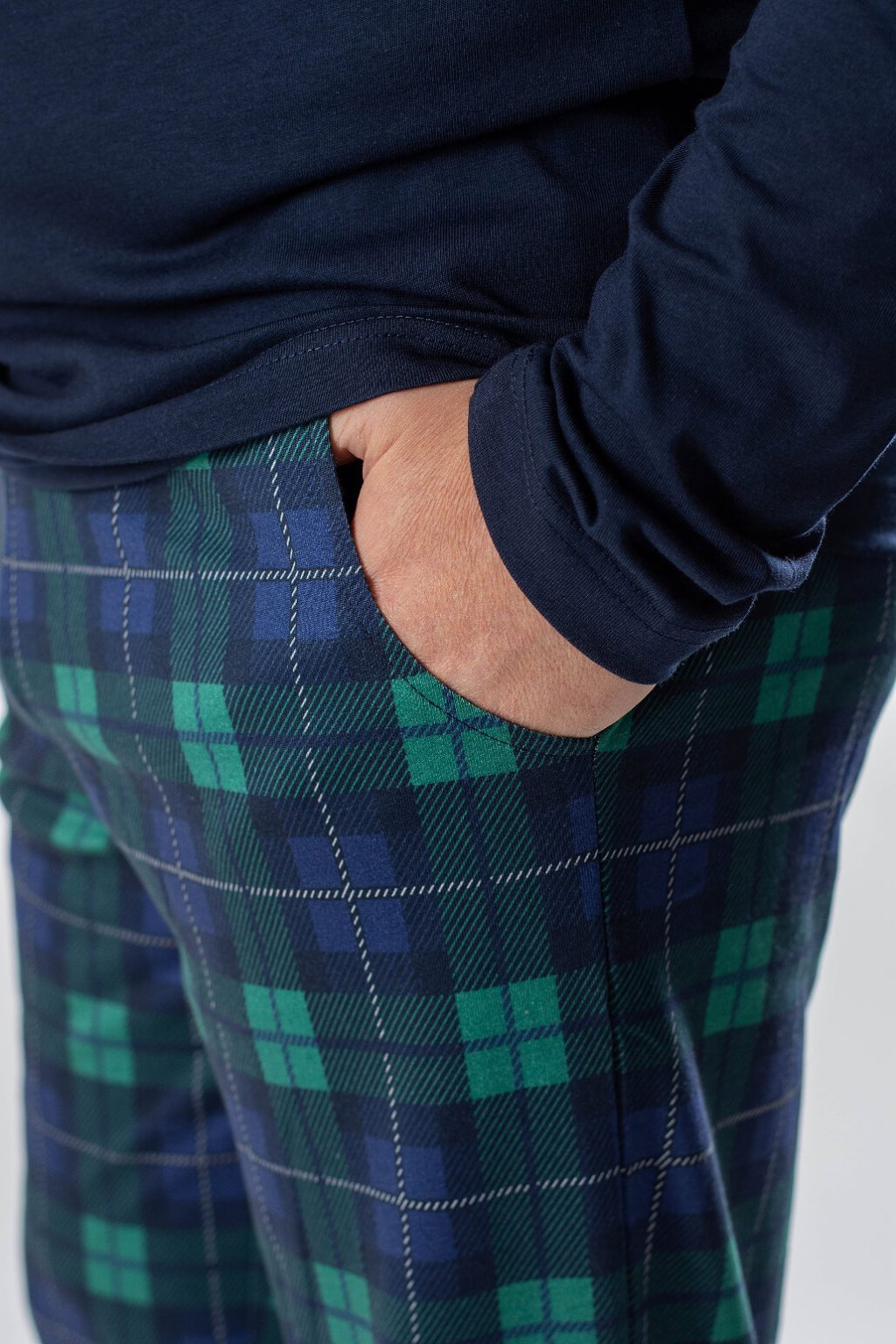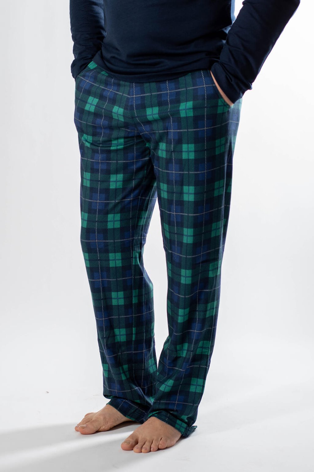 Pánske kárované nohavice.