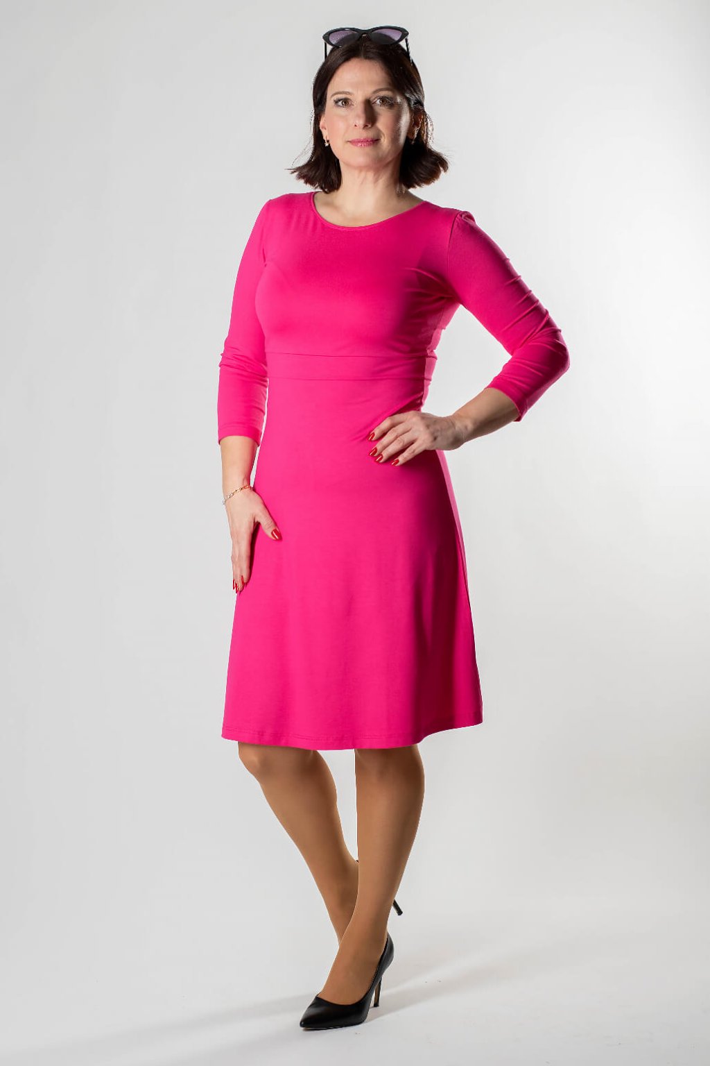 Túžite po kúsku, v ktorom budete neprehliadnuteľná a zároveň sa budete cítiť mimoriadne pohodlne? Dámske šaty KALISA v nádhernej cyklámenovej farbe sú stvorené pre sebavedomé ženy, ktoré milujú farby. Ich strih s mierne rozšírenou sukňou a trojštvrťovými rukávmi lichotí každej postave a dodáva outfitu eleganciu vhodnú do práce, na kávu do mesta aj na rodinnú oslavu.