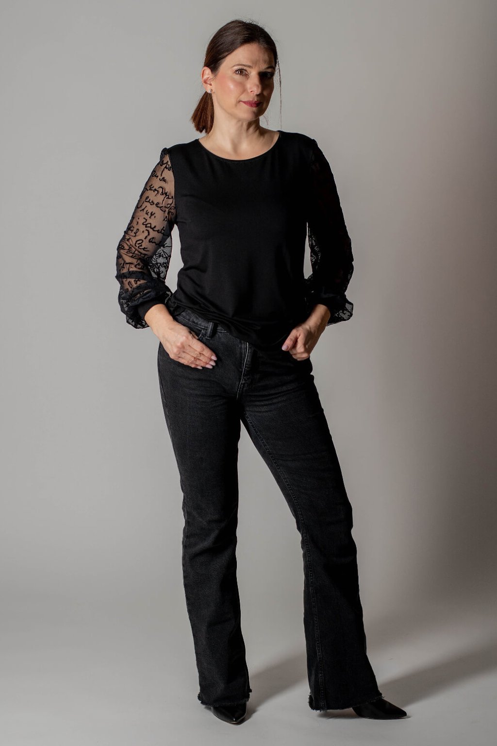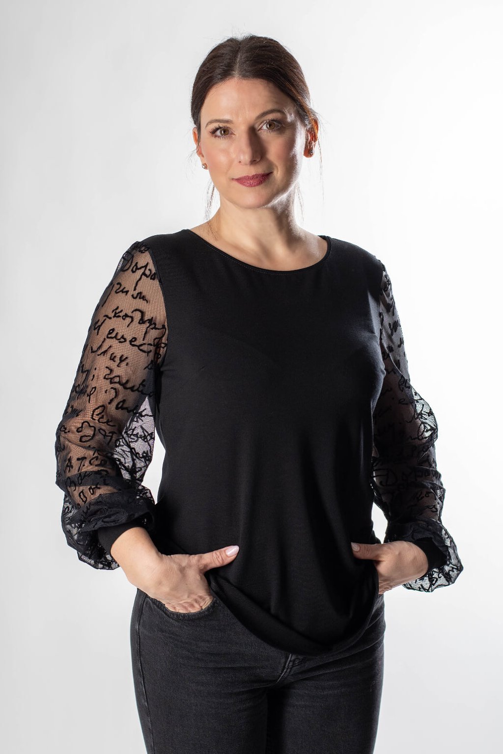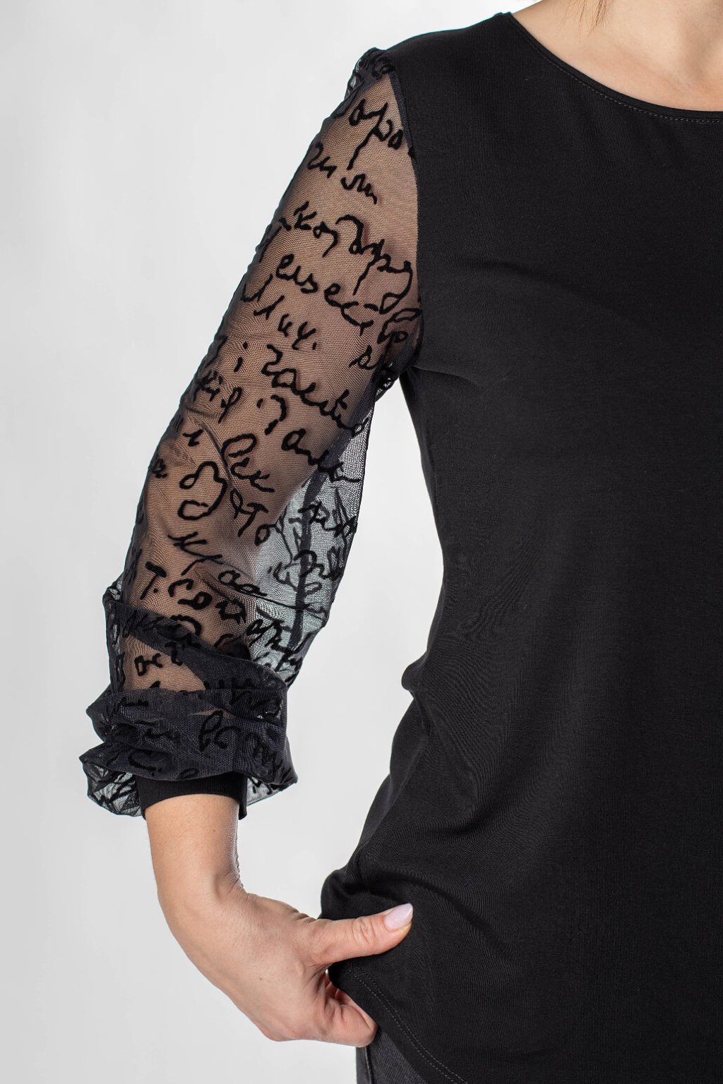 Čierne dámske tričko s tylovými rukávmi ARI