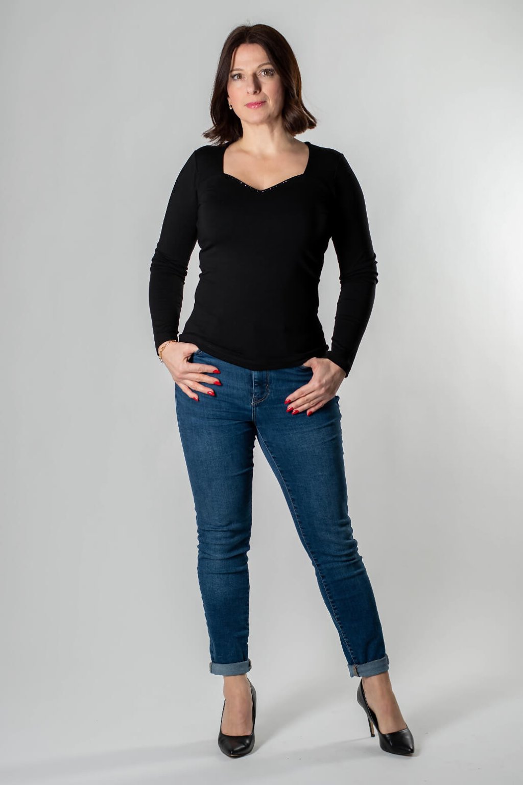 Dodajte svojmu šatníku šmrnc s tričkom, ktoré v sebe spája nadčasovú eleganciu a maximálne pohodlie. Dámske tričko NOAMI v klasickej čiernej farbe okamžite upúta pozornosť svojím netypickým výstrihom, ktorý je jemne lemovaný krištáľmi Swarovski. Tento detail robí z obyčajného trička s dlhým rukávom výnimočný kúsok vhodný na spoločenské udalosti aj bežné dni, kedy sa chcete cítiť špeciálne.